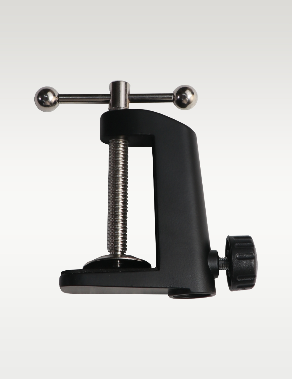 - Universal mounting clamp attaches to tables, desks, shelves, counters, etc. Suitable for any stores, families, stages, studios, broadcasting and TV stations, etc. with an adjustable positioning screw, can easily clip to any desktop up to 1.7″/4.5cm thick