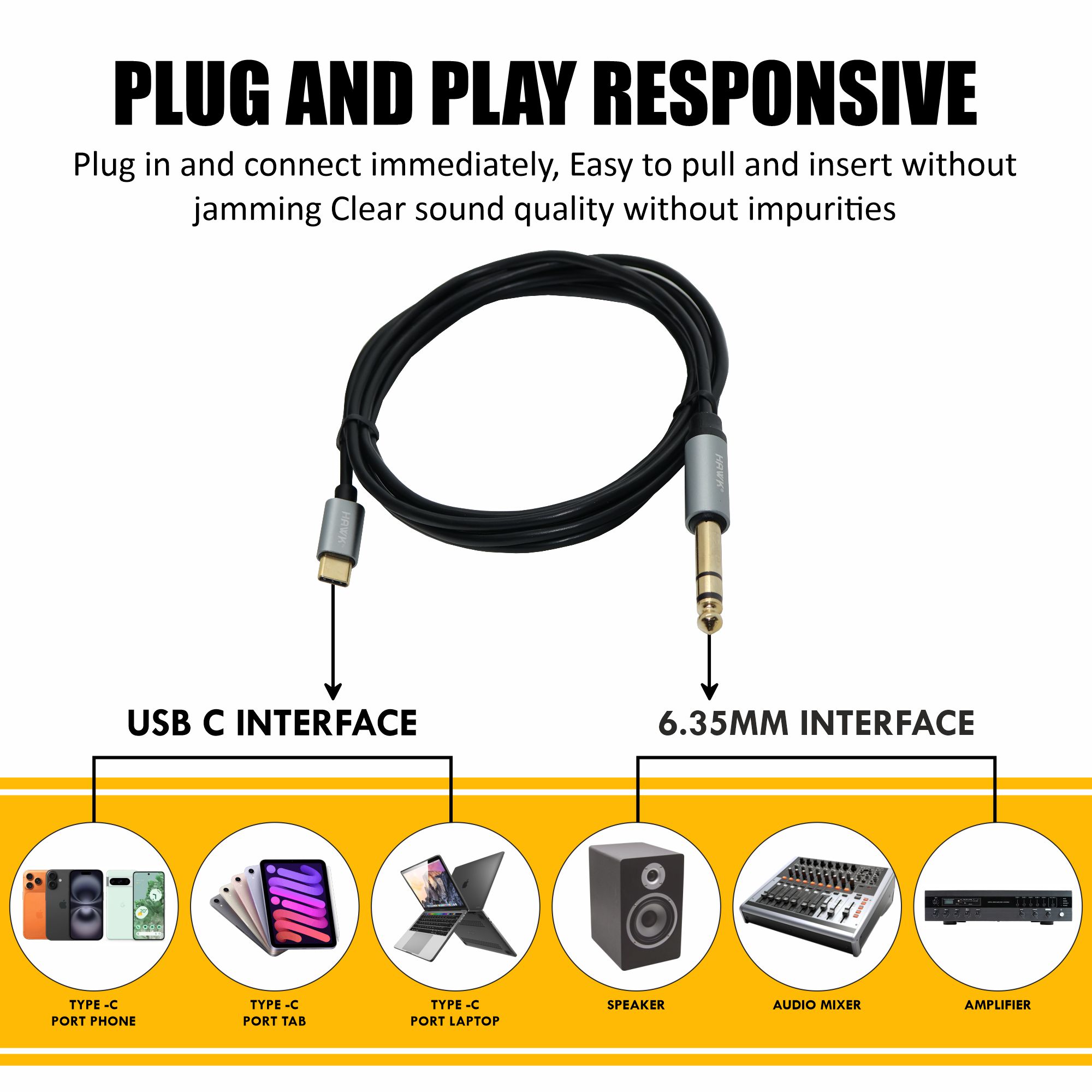 • 6.35 MM compatible with speaker, audio mixer and amplifier.
