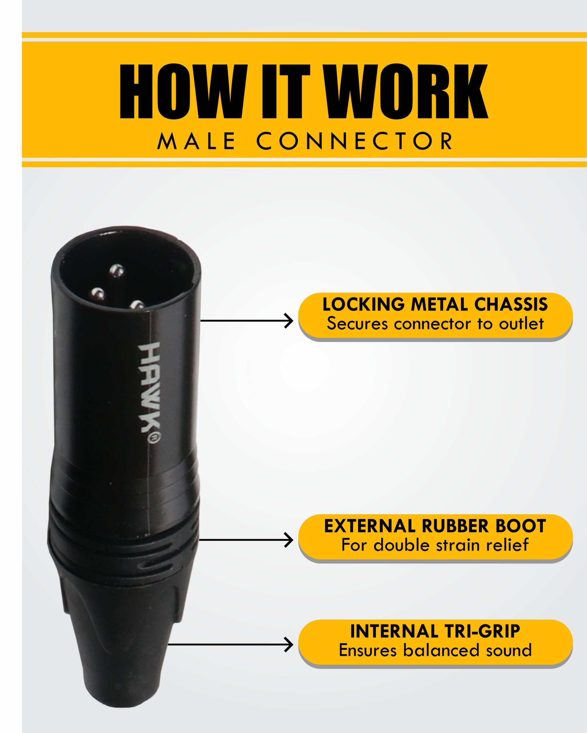 • XLR connector with internal strain relief for rugged reliability