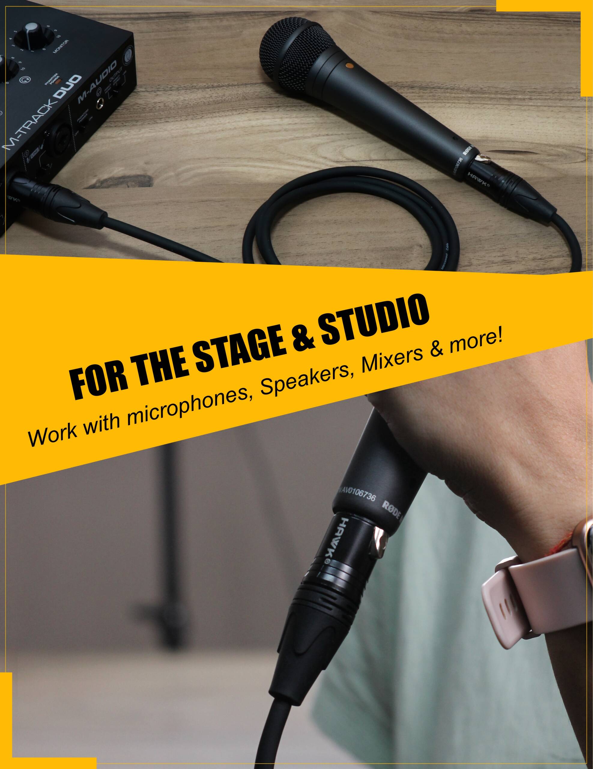Hawk SXFG005 Gold Series XLR Male to XLR Female Cable comes with a cable tie, can be used with microphone, audio interface, speakers, audio mixers, audio equipments.